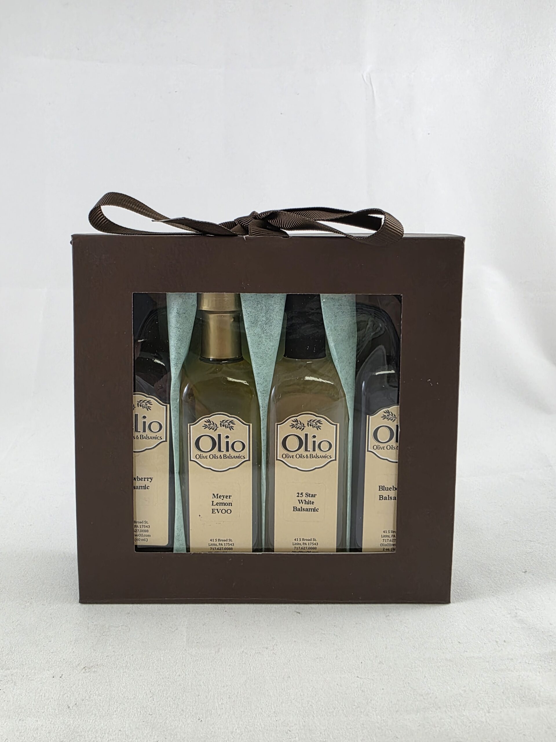 Set includes: Strawberry Balsamic, Meyer Lemon EVOO, 25 Star White Balsamic, Blueberry Balsamic