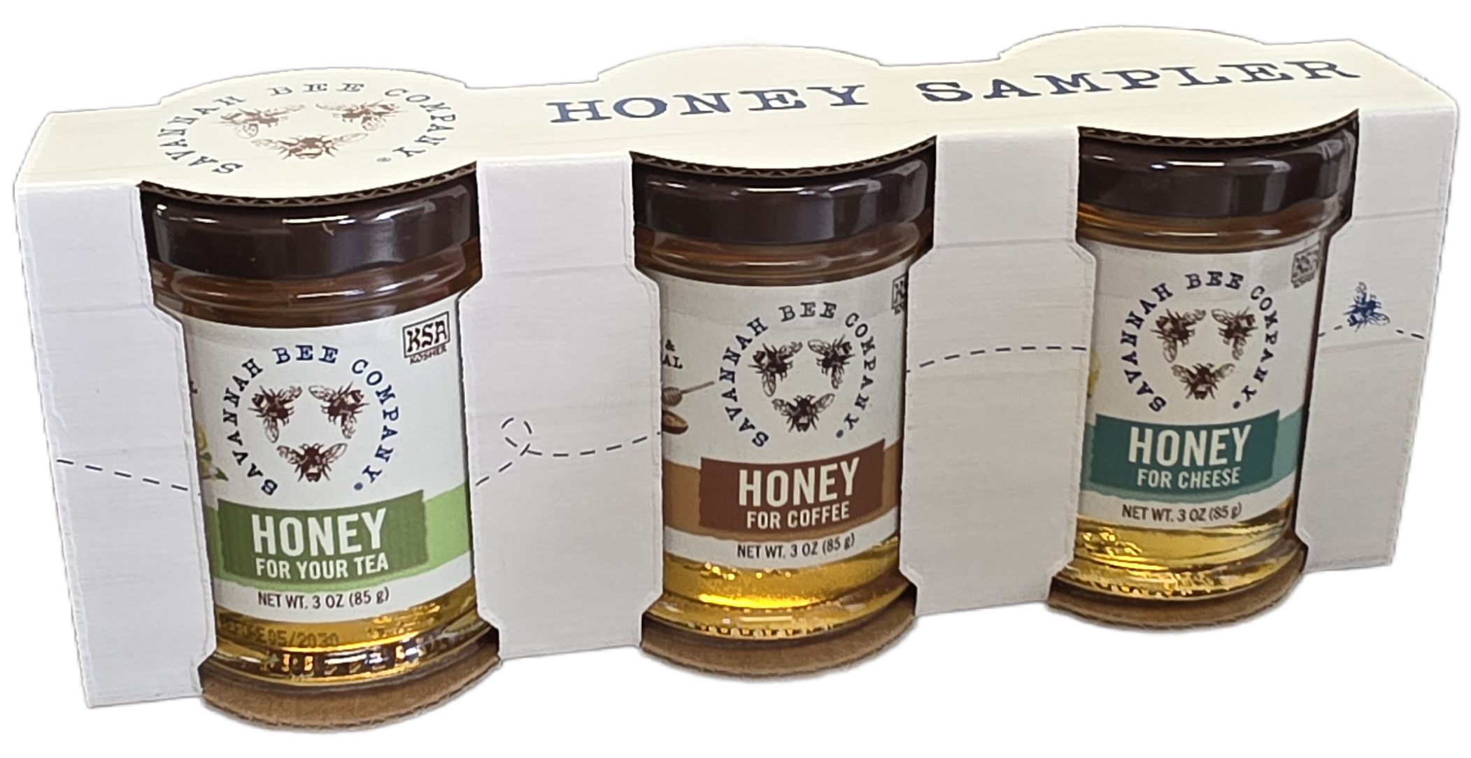 This honey sample set includes Honey for Tea, Honey for Coffee and Honey for Cheese.