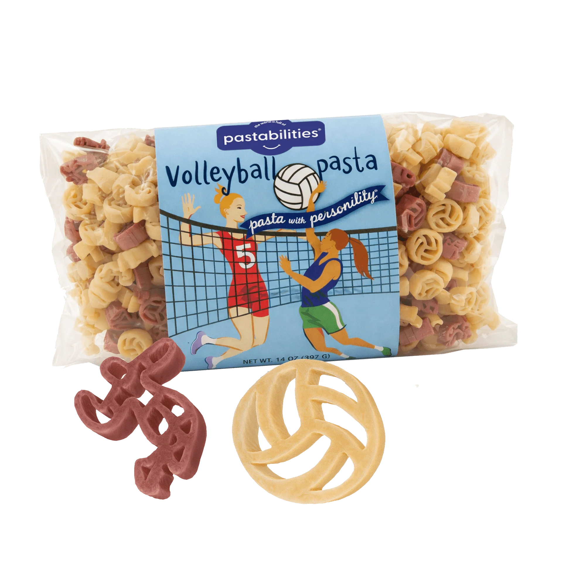 Our Volleyball Pasta is a smash hit for athletes and pasta lovers alike. Made from 100% durum wheat flour sourced from North American farmers and all natural vegetable powders. Sure to make your next post-game celebration more fun!